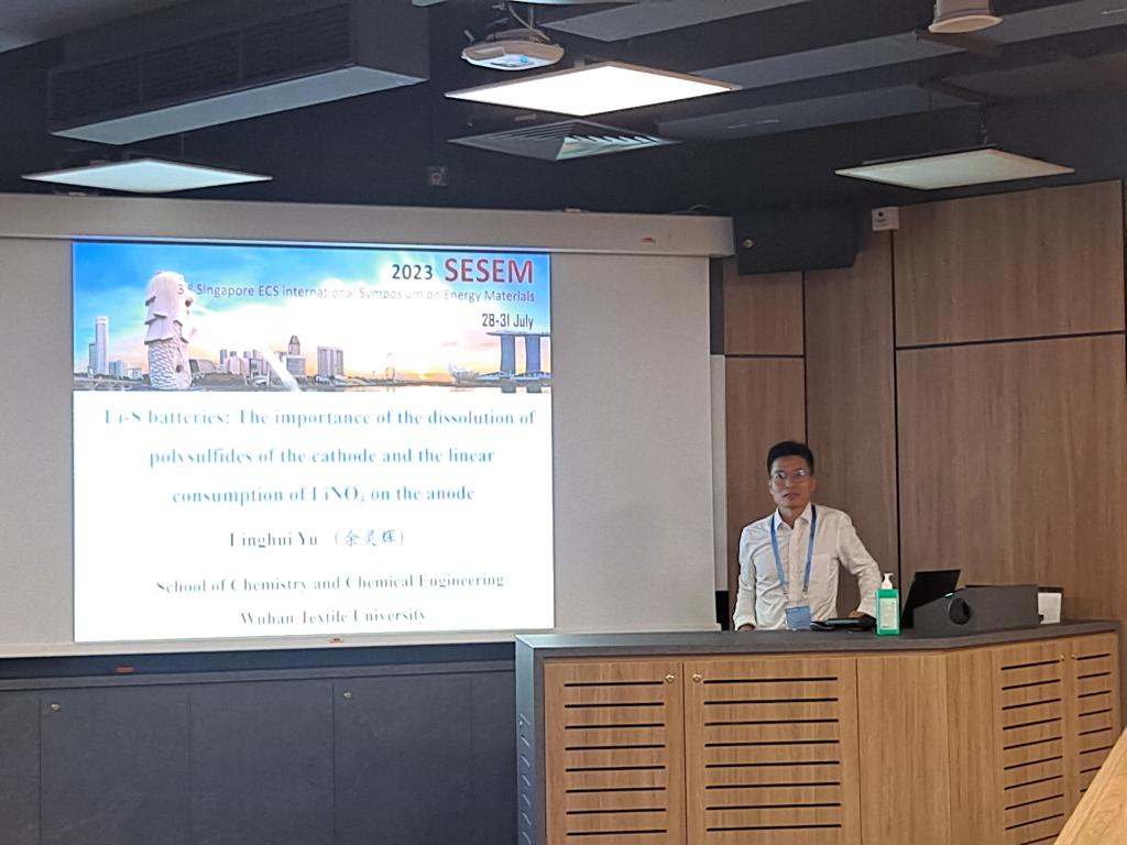 2023年07月28-31日,第三届Singapore ECS international Symposium在新加坡南洋理工大学召开。我院余灵辉教授和彭俊军副教授参加了大会。会上余灵辉教授做了题为“Li-S batteries: The importance of the dissolution of polysulfides of the cathode and the linear consumption of LiNO3on the anode”介绍了多硫化锂溶解在锂硫电池中溶解的重要性以及LiNO3在负极上的持续消耗行为;彭俊军副教授做了题为“Cotton fiber-based hard carbon for electrochemical energy storage”的邀请报告,介绍了基于棉织物的硬碳在储能方面的应用。两位教师与现场专家学者在相关领域进行深入探讨和交流。本次会议聚焦于电化学储能与催化研究方向,参会学者分别来自中国、美国、新加坡、印度等国家。