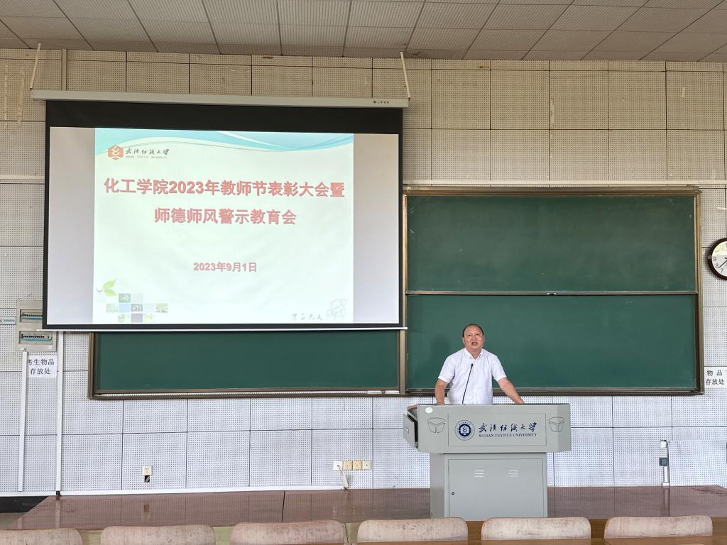 在崇德楼T102教室召开2023年教师节表彰大会暨师德师风警示教育会。学院全体教职工参加,院党委书记杜勇主持会议。