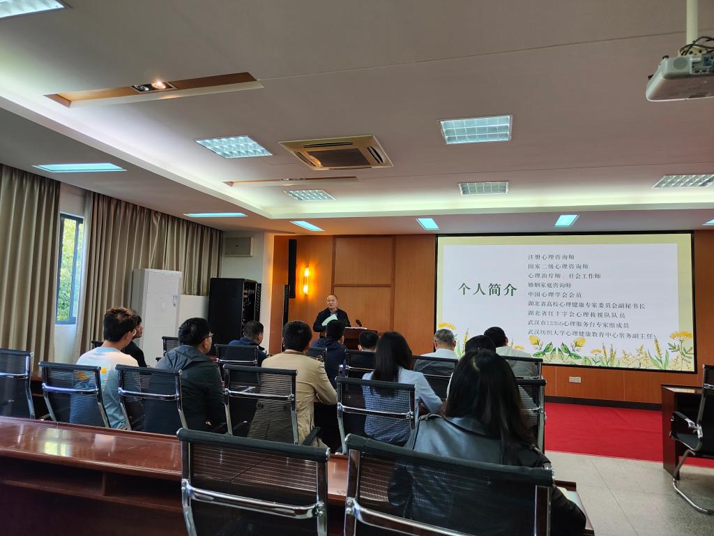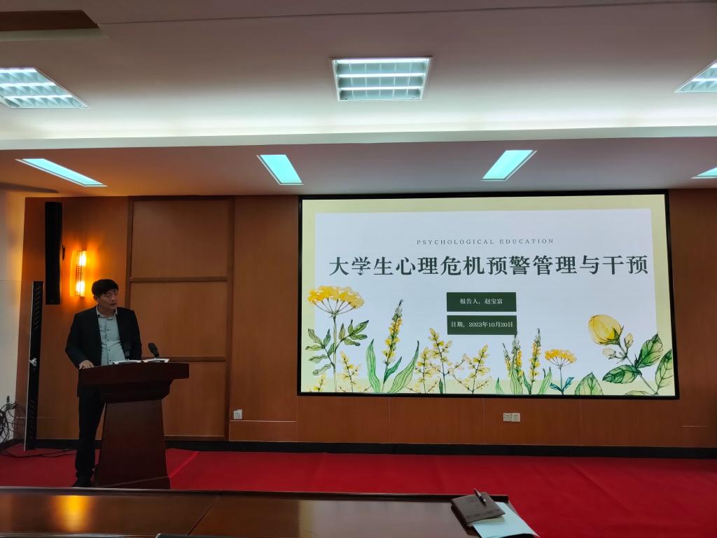 为加强学院心理危机工作建设,提升研究生导师、班主任、辅导员心理危机意识,熟悉干预工作流程,进一步提高心理危机事件干预处置能力。10月20日下午在理工楼310会议室,我院特邀心理健康教育中心常务副主任赵宝富开展《大学生心理危机预警管理与干预》专题讲座。院党委书记杜勇、副书记莫德辉、副院长刘丽君、副院长陈飞飞、研究生导师、辅导员、本科生班主任等参加本次讲座,讲座由杜勇主持。