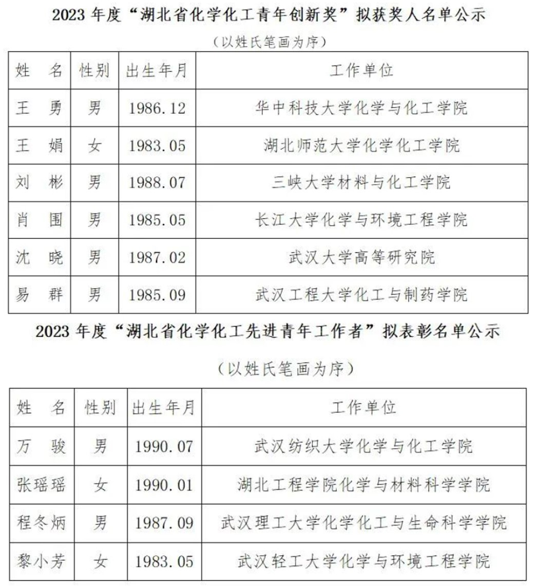 近日,为有效发挥先进典型的示范带头作用,激发广大化学化工行业青年科技工作者的激情与活力,增加事业心、责任心和进取心,促进青年工作的健康持续发展。经湖北省化学化工青年委员会提名,湖北省化学化工学会研究决定,将万骏等4名青年科技工作者作为2023年度“湖北省化学化工先进青年工作者”予以表彰。