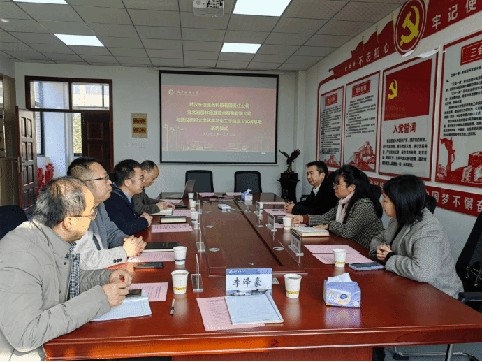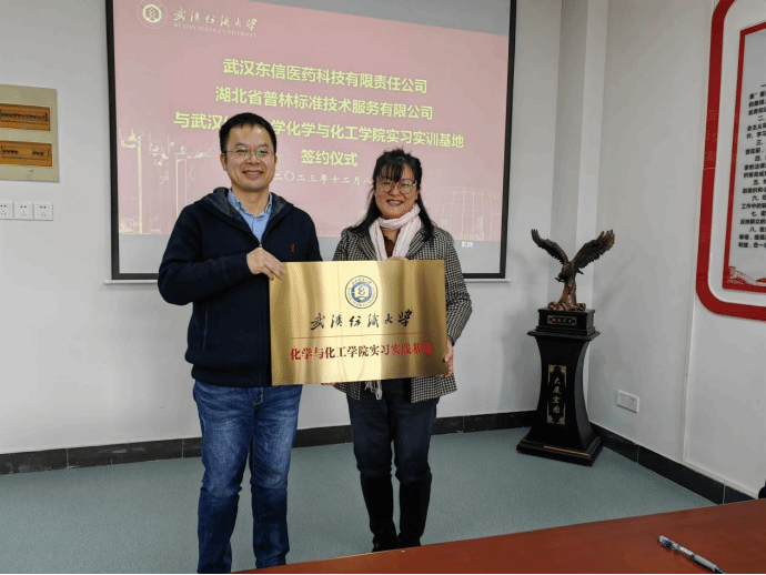 党委书记杜勇、院长朱君江、副院长陈飞飞及化妆品系教师代表、武汉东信医药科技有限责任公司党支部书记刘文富、湖北省普林标准技术服务有限公司总经理程立红等人出席了活动。仪式由杜勇主持。