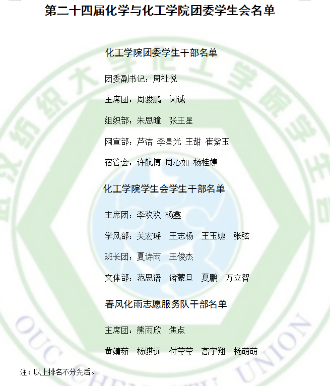 我院于5月20日召开了团委学生会换届大会,进行了团委学生会主席团、主要学生干部选举。现将51暗网 第二十四届团委学生会主席团、主要学生干部选任结果公示。公示期为年5月25日至30日,如有异议,请到“春风化雨”学生成长驿站当面反馈或实名来电:027-59367246(雍老师)。
