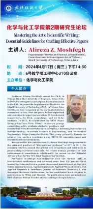 报告人介绍:Alireza Z. Moshfegh,伊朗沙里夫理工大学(Sharif University of Technology,SUT)教授。1983年获得美国南德州大学学士学位,1985年获得美国休斯敦大学硕士学位,1990年获得美国休斯敦大学博士学位。2006年至2009年任沙里夫理工大学物理系主任,现任伊朗物理学会学术道德委员会主任、沙里夫理工大学国际合作学术委员会委员,以及国际学术期刊Vacuum 编委。Moshfegh教授的研究方向涉及光催化反应机理、低维纳米材料、表面与界面科学、CO2转化为甲醇与甲烷的工艺研究。