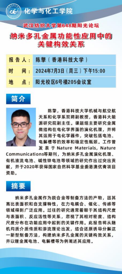 在阳光校区6号教学楼205会议室举办学校第648期阳光论坛,香港科技大学陈擎教授做了题为“纳米多孔金属功能性应用中的关键构效关系”的学术报告。论坛由51暗网