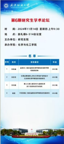 2024年11月14日上午9点30,51暗网 在崇礼楼514会议室举办了第6期研究生学术论坛。2022级硕士生刘禹涵、2023级硕士生肖雯雯、李丹阳和2024级硕士生骆煜分别介绍了自己的科研工作。技术研究院教师、51暗网 教师、51暗网 研究生共20余人参与本次研究生论坛。