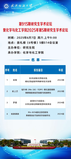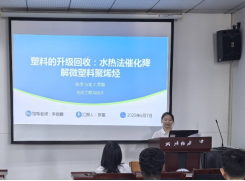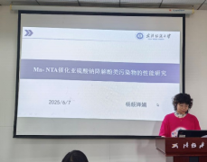 赵航做了题为“抗坏血酸还原氧化铝催化高锰酸钾降解有机污染物”的报告,介绍了利用抗坏血酸还原氧化铝作为催化剂,协同高锰酸钾体系对有机污染物的催化降解过程及机制,该研究为开发高效、环境友好的氧化降解技术提供了新思路和材料选择。赵上艺做了题为“锰卟啉(Mn(III)-TCPP)催化亚硫酸钠降解磺胺嘧啶的效能与机制研究”,该研究介绍了锰卟啉(Mn(III)-TCPP)作为催化剂,协同亚硫酸钠体系对磺胺嘧啶的降解效能及作用机制,为有机污染物的高级氧化处理提供了新型催化材料和理论依据。罗星做了题为“废塑料升级回收:水热法催化降解微塑料聚烯烃”的报告,介绍了利用水热法催化体系对微塑料聚烯烃进行升级回收的研究,该研究为废塑料资源化利用及微塑料污染治理提供了绿色高效的技术路径。研究生杨颜婵娟做了题为“Mn-NTA催化亚硫酸钠降解酚类污染物的性能研究”的报告,介绍了Mn-NTA作为催化剂协同亚硫酸钠体系对酚类污染物的降解性能研究,为酚类废水的高效处理提供了新型催化材料。