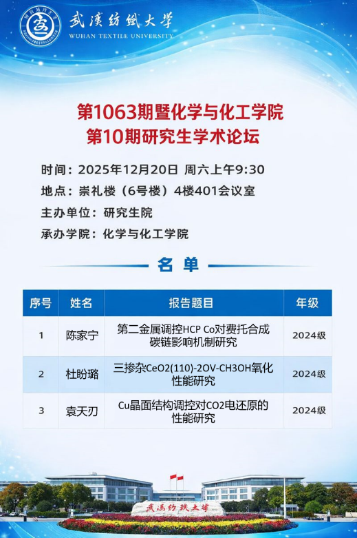 通过三位研究生的专题报告,与会师生深入了解了当前化学与化工领域相关前沿课题的研究背景、技术路线及阶段性成果,并就实验设计、机理分析与数据表征等问题进行了交流讨论。学术论坛现场氛围活跃,讨论充分,有效促进了研究生之间以及师生之间的学术互动与思想碰撞。