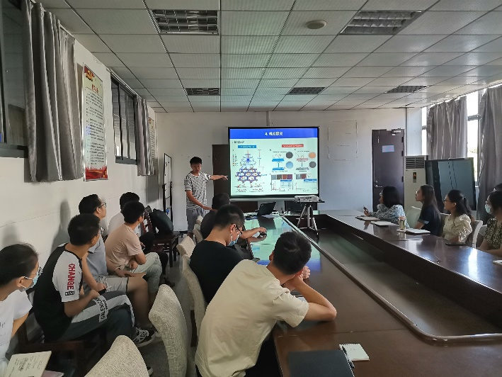 本次研究生学术论坛由胡荣、李博文、刘自豪、鲜靖林、方应梅、鲁婷婷6位2020/2021级研究生分别作报告,展示了金属碳化物可持续析氢、电催化氢化还原靛蓝、微波脉冲法、钴掺杂WO3、亚砜配体MOFs构筑、废旧棉的钠电能源化等的研究。