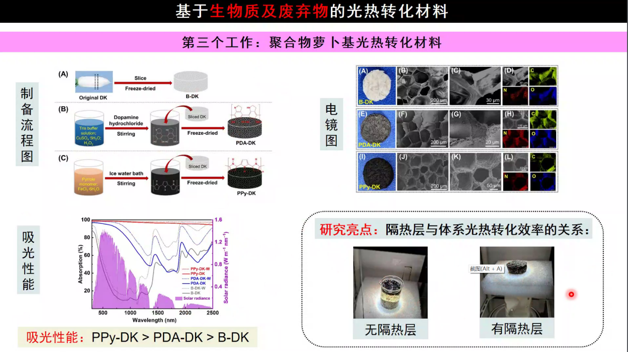 彭帅博士在本次报告中详细为我们介绍了各种农林固废制备生物炭及其复合材料的制备及其催化机理,以及复合材料催化降解挥发性有机溶剂的性能。熊俊博士则介绍了光热转换材料的背景及意义和基于生物基的光热转换材料的制备与性能。报告结束后,彭帅博士与熊俊博士对学院师生的问题一一解答,参会师生对精彩学术报告表示诚挚的感谢。
