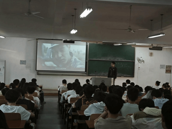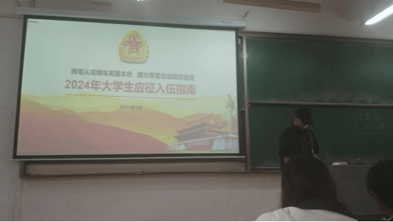 2021级本科生黄路翰作为学生征兵宣讲员,以自身入伍动机、入伍经历、入伍感受等内容,为学生们提供全方位的信息和机会,深入了解参军的先决条件和职责要求。学院征兵联络员、2022级本科生辅导员程文杰则深入介绍了入伍待遇、入伍条件、入伍流程环节,普及入伍常识。就入伍与考研考公的相关政策进行专门解读。