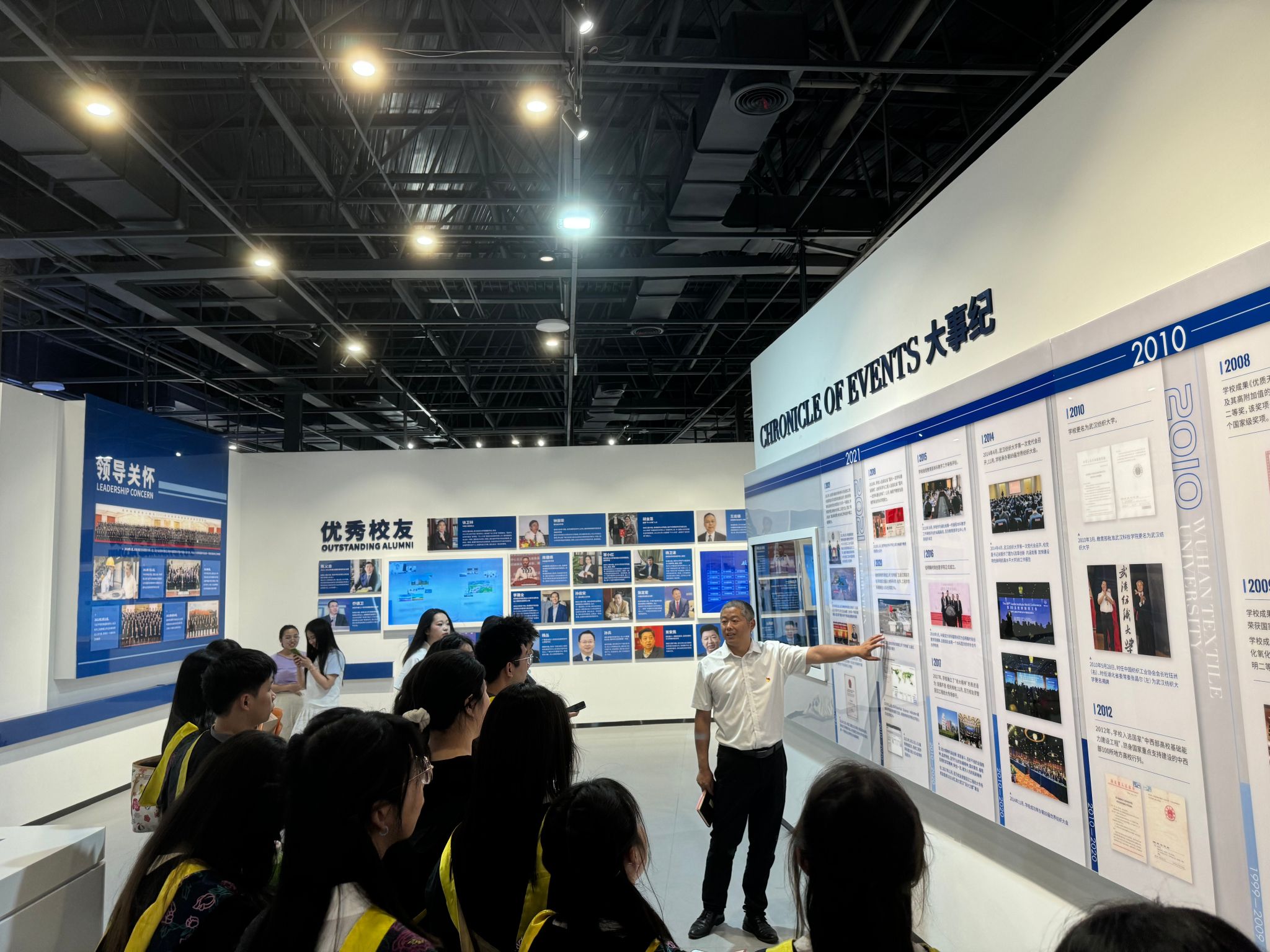 馆内包括纺织缘、传统纺织、现代纺织、大纺织、超纺织、未来纺织等分区,集纺织文化、校史宣传、科普教育、纺织科研成果展示等功能于一体。同学们依次参观了六个篇章构成的展厅,感受学校60多年来的发展历程和历史变迁以及自强不息、与祖国共命运、与新中国纺织事业同进步的辉煌历程,进一步了解了学校建设发展历程,深切感受学校深厚的历史文化底蕴,汲取了不忘初心、继续前行的奋进力量。