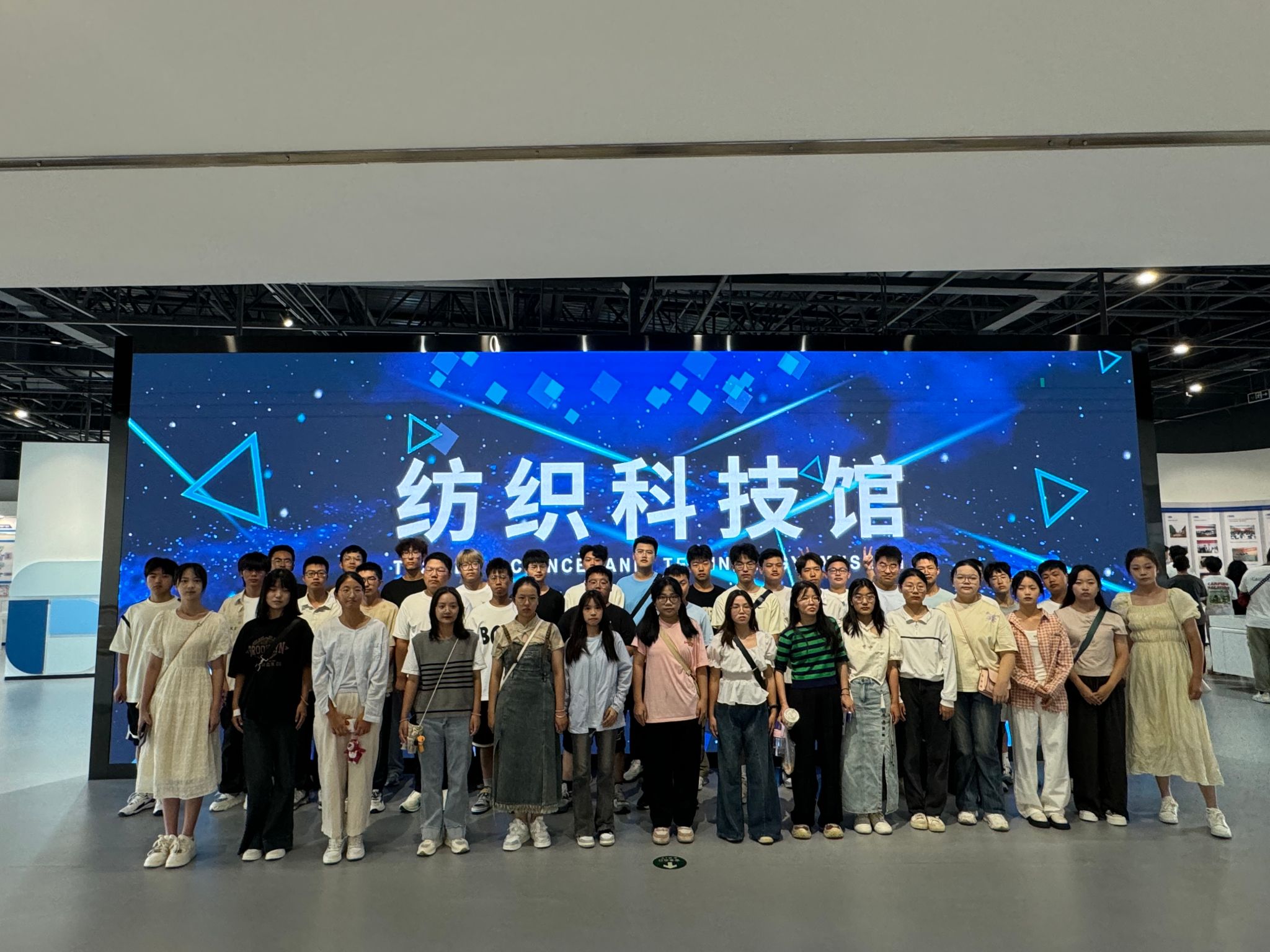 的新生分批在纺织科技馆内体验了一场引人入胜的参观活动,深入了解了纺织历史和纺织科技。