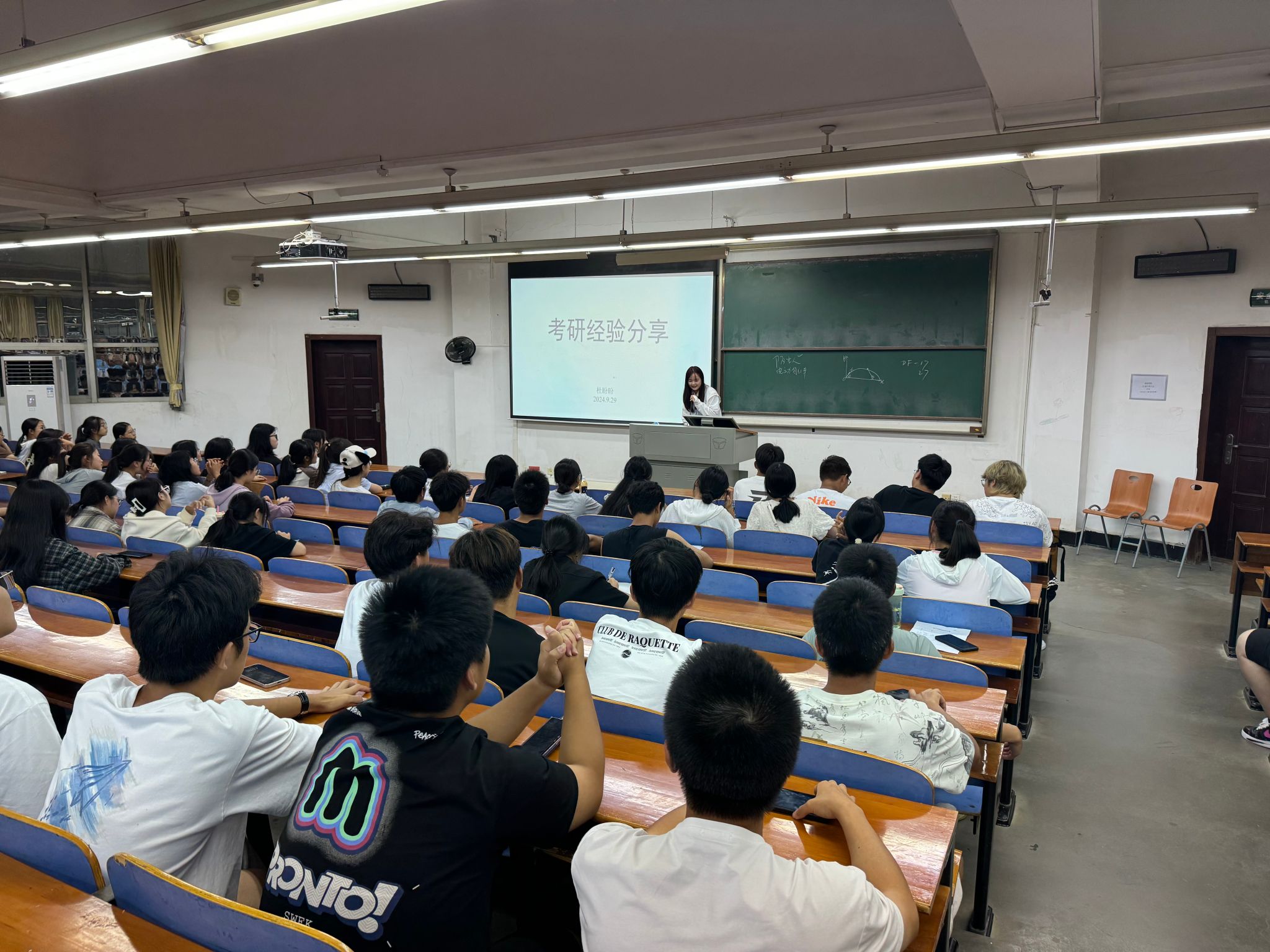 9月29日下午,学院优秀毕业生牛艳萍和杜盼盼为新生进行考研分享。他们从确立目标、时间规划、复习方法、心态调整等方面告诉新生应当提早树立考研意识,合理安排时间以及在大学学习、生活中基础课的重要性。
