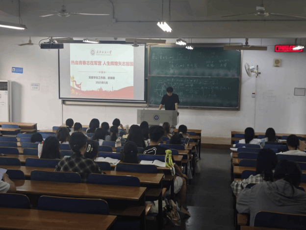 本次宣讲活动围绕“热血青春志在军营,人生辉煌矢志报国”主题,学院征兵联络老师程文杰通过生动的案例、感人的故事,引导学生深刻理解投身国防事业的重要意义。分享以武装部提供的PPT为基础,详细解读了国家征兵政策、报名条件、福利待遇以及退役后的就业优势等内容。学院征兵联络员强调,大学生应征入伍不仅是履行国防义务的重要体现,更是锻炼意志、提升自我的宝贵机会。