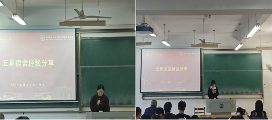 6A622、6A522宿舍的两位五星宿舍寝室长结合各自管理经验带来“可复制、能落地”的分享,为现场宿舍长提供参考思路。 两位寝室长从“安全管理、卫生维护、文化建设”三个维度展开,提出“固定轮值+弹性调整+每日自查”模式,创新“文化建设+安全宣传”结合的方式,既增进室友感情,又强化安全意识。