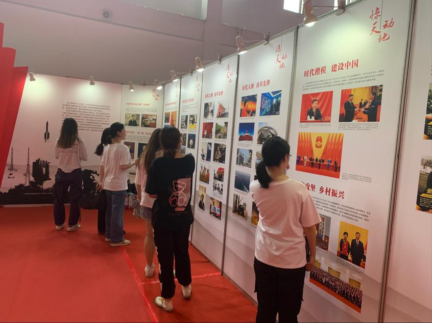 全体学生依次参观了党史和校史两大板块,在“建功立业 百年辉煌”党史板块,通过“开天辟地”、“改天换地”、“翻天覆地”、“惊天动地”四部分内容的图片,详细了解了党带领人民进行革命、建设、改革的伟大历史实践,重温建党百年来波澜壮阔的伟大历程,感受其中蕴含的伟大精神;在“崇真尚美 美好纺大”校史板块分,同学们重点了解了学校在党的正确领导下所取得的办学实践和系列成就。同学们或驻足仔细观看,或是小声交流讨论,纷纷表示,通过参观展览,上了一堂别开生面的生动党课,“我们不仅仅是历史的见证者,更是参与者。我们会永远跟党走,不忘初心,为共产主义奋斗终身。”一位同学在观展时这样说到。还有同学激动的表示:“正值建党百年之际,我们新时代大学生要不忘初心,牢记使命跟党走,学好知识,夯实基础,为中华民族伟大复兴贡献自己的力量。”