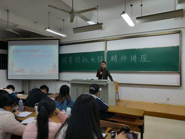于六栋教学楼展开 “朋辈领航长征精神讲座”,重温长征精神,学习先辈艰苦奋斗精神。本次讲座由学院学生会主席宋小林主讲。