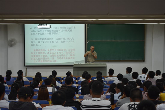 9月28日下午,学院邀请保卫处夏向阳主任为新生开展安全知识讲座。夏处长通过一个个高校发生的实际案例强调了安全教育的重要性。他提醒同学们安全是大家学习生活的保障,在校期间同学们应当提高防范意识,注意防火、防盗、防骗,外出时应注意出行安全,严格遵守请销假制度。同时,夏主任还叮嘱同学们建立良好的消费习惯,坚决抵制非法校园贷。