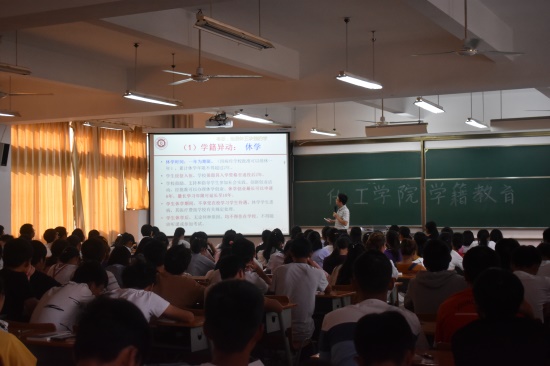 30日上午,学院李明副院长为新生就学校学籍管理规定进行详细解读。讲座中,李明院长采用新颖有趣的讲解模式,极大的激发了同学们的兴趣。从“天下第一大处”、“两个人”、“三个网站”引入学籍讲解,层层深入,生动形象。以两名毕业生实际案例为例,清晰地说明了深入理解学籍管理规定的重要性。同时以多方面数据直观地向同学们讲述学籍情况。