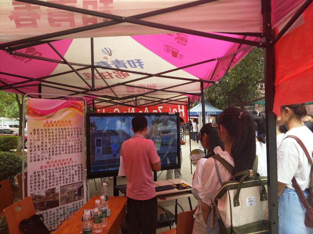 今年的迎新工作不同往年,增添了丰富多彩的新元素。新生初来乍到,还未走进课堂,学院将虚拟仿真实验室搬到迎新点,让新生提前感受学科魅力,先一步走进化工课堂。虚拟仿真将虚拟现实、多媒体、人机交互、数据库和网络通讯等进行整合,构建高度仿真的虚拟实验环境和实验对象,让学生在虚拟环境中开展实验,在感官、操作能力、创新能力、综合素质等各方面得到提升。虚拟仿真的教学方式贴合年轻人兴趣,将学科知识融入到游戏中,以达到边玩边学、寓教于乐的教学目的。学院副院长李明亲自到迎新点指导学生进行虚拟仿真操作,不少新生试玩后表示出浓厚兴趣。