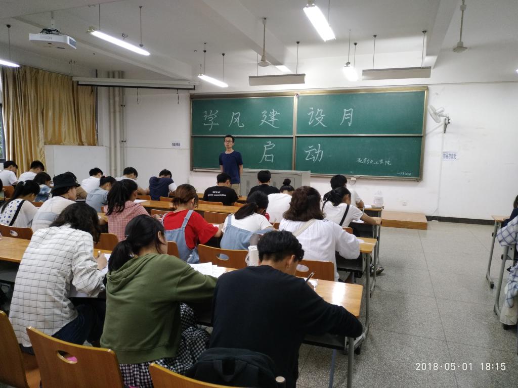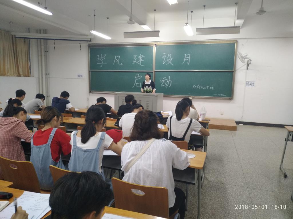 于六栋教学楼召开各年级大会开展学风建设月的启动活动。