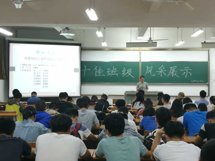 在此次活动中,八个班长以PPT以及视频的形式对各自的班级进行了班级特色风采展示。一张张照片,一段段视频,展现的是青春的活力、班级的凝聚力。谈到各自的班级,团结的“小家”之情溢于言表。希望他们能在化工“大家”里茁壮成长。“十佳学子”评选活动中,各位同学上台分享了他们学习生活中的点滴。此次活动共设立了十佳学习先锋、十佳科创先锋、十佳自强先锋、十佳文明先锋等十个奖项。希望同学们能够人人争当先锋,向榜样看齐。