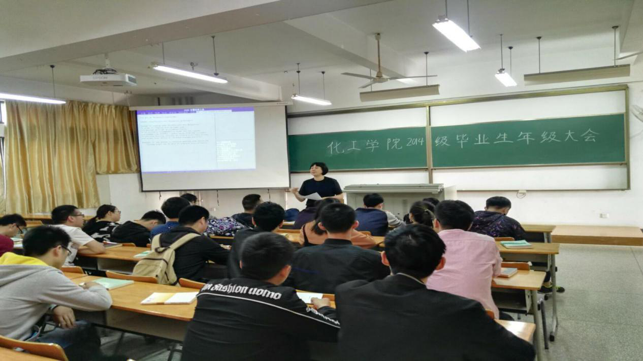 于6栋理工楼210教室召开2014级年级大会。本次会议由辅导员胡子英老师主持,主要围绕毕业生毕业新规、求职安全、档案去向以及去基层就业政策等内容展开。