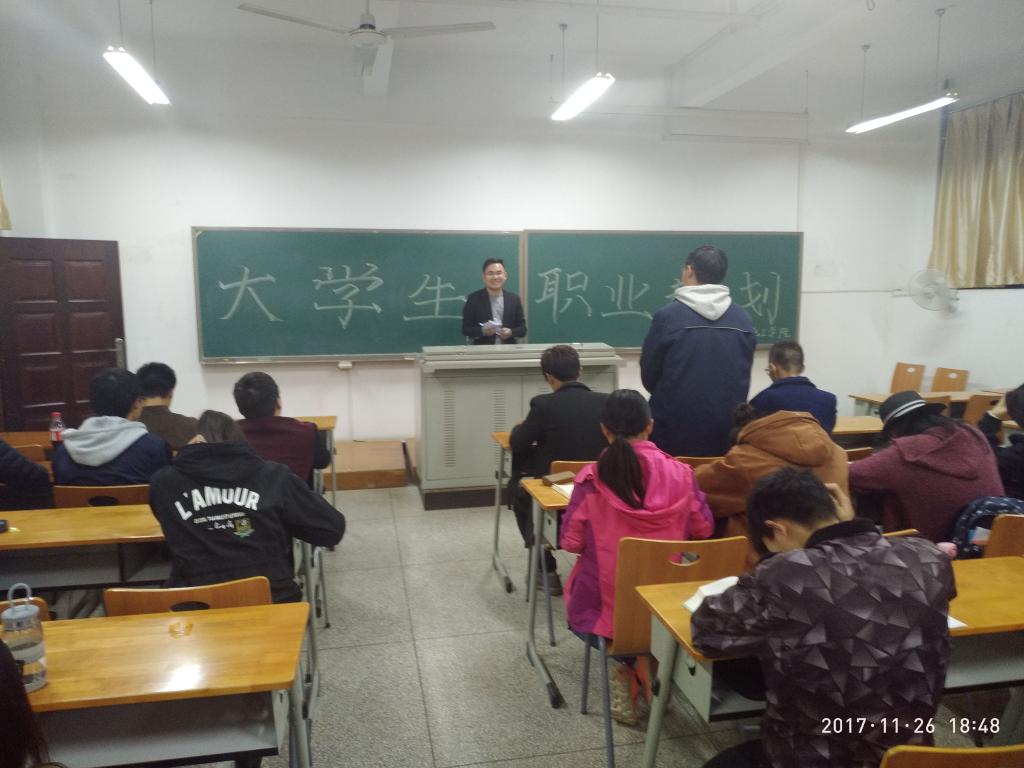 于2017年11月26号晚上在06-212举办了大学生职业规划讲座,由14届毕业生王军针对17级学生开展职业规划讲座。