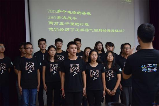 本次活动在精彩的猜字谜游戏中拉开帷幕。由院学生会成员表演的大合唱《红军长征组歌之突破防线》、《英雄赞歌》等红歌真实再现了长征中经典战役,讴歌了将士们不怕牺牲、一往无前的英雄气概。