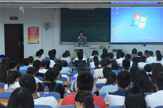 昨日上午9时许,分党委副书记凡蓉蓉结合学生手册,从网络安全、校纪院规、违纪处分、评优评先、大学生奖助贷金申领、安全隐患、日常作息等几个方面给予了16级新生一个全面、生动的鼓励性教学。学前教育在讲述“奖助贷”、“评优评先”环节进入高潮,学生们的积极性被充分调动,对大学四年的学习充满干劲。此时,凡蓉蓉不失时机地穿插违纪处分规定及鲜活的案例,使讲座气氛严肃又不失趣味,让同学们印象深刻。