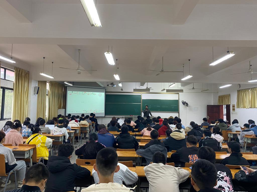 辅导员谈鹏老师在崇礼楼211、212教室为我院2021级全体新生开展以“理想信念与大学生成长成材”为主题的第三次团课。