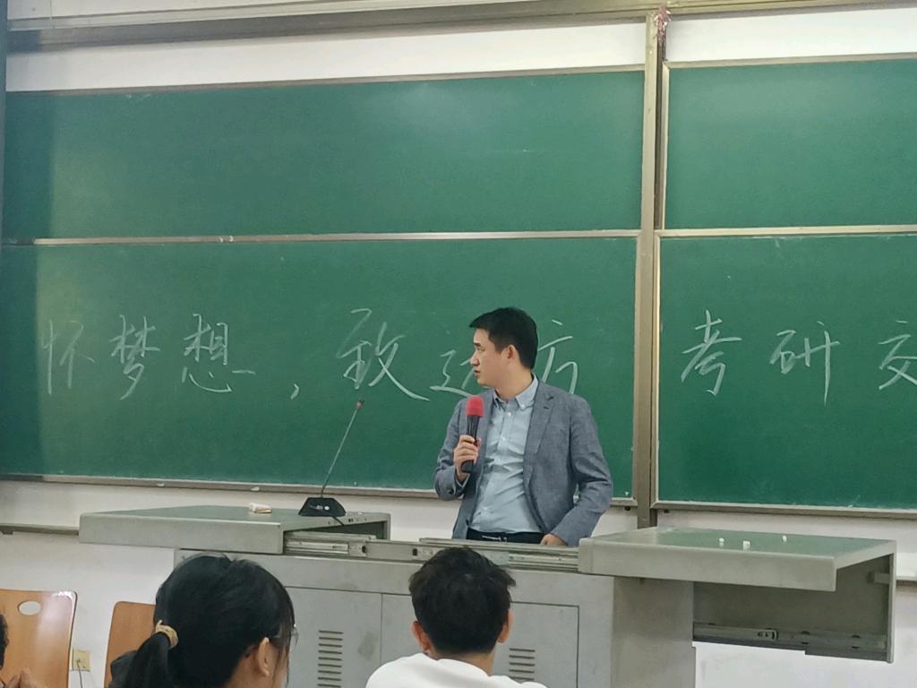 于10月13日中午12点在崇礼楼T210举行“怀梦想,致远方,考研交流大会”。学院党委书记杜勇,院长朱君江,副院长刘丽君、党委副书记尤雯文、辅导员郭捷及全体2019级考研同学参加此次活动。