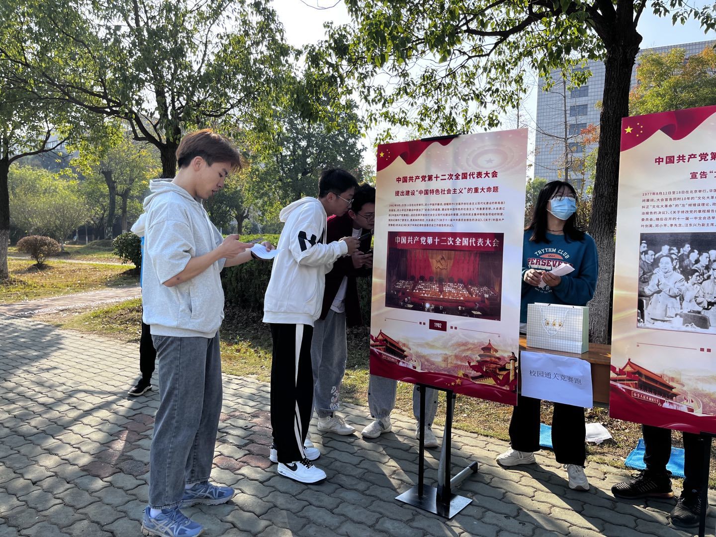 此次活动以“趣味定向跑+党史知识问答”的形式开展,共设9个关卡,其中5个关卡展示党的历次党代会相关内容,并设置和历次党代会的具体内容相关的问答题,4个关卡为趣味团体项目,如投篮、团体凝聚力小测试等。
