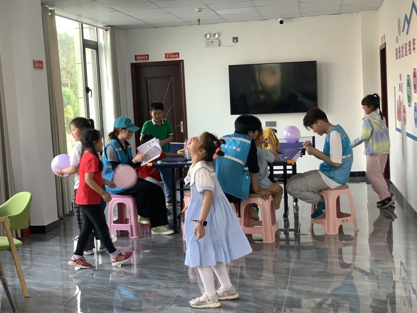 活动现场,志愿者们不仅辅导孩子们的学业作业,还会讲授一些生活当中的有趣现象,做游戏和手工等。让孩子们既能完成作业,增长知识,又开拓孩子们的视野,十分有利于孩子们的未来发展,有助于孩子们了解社会,健康成长。同时也让我们所学的知识服务社会,实现自我价值与社会价值的统一。