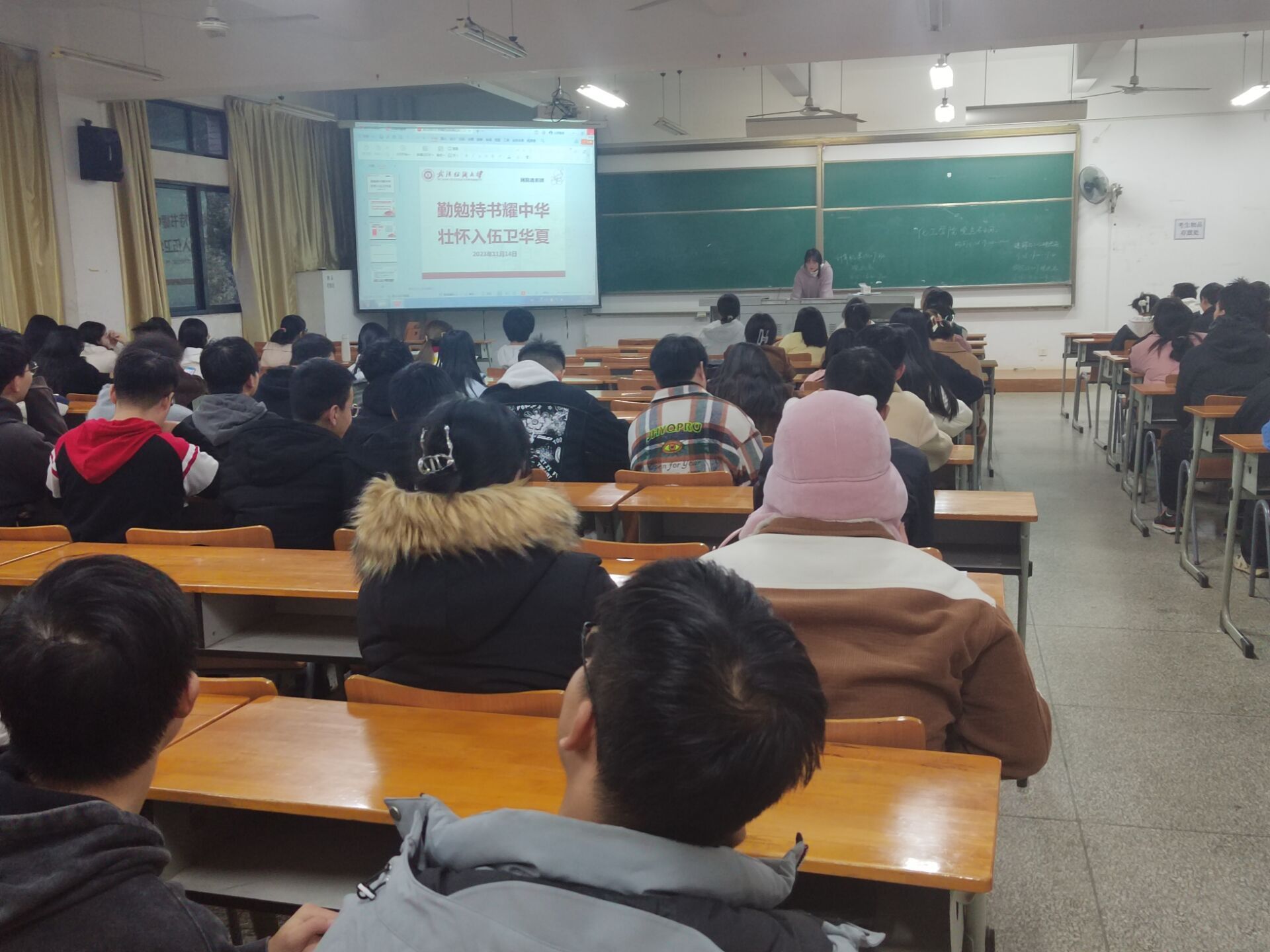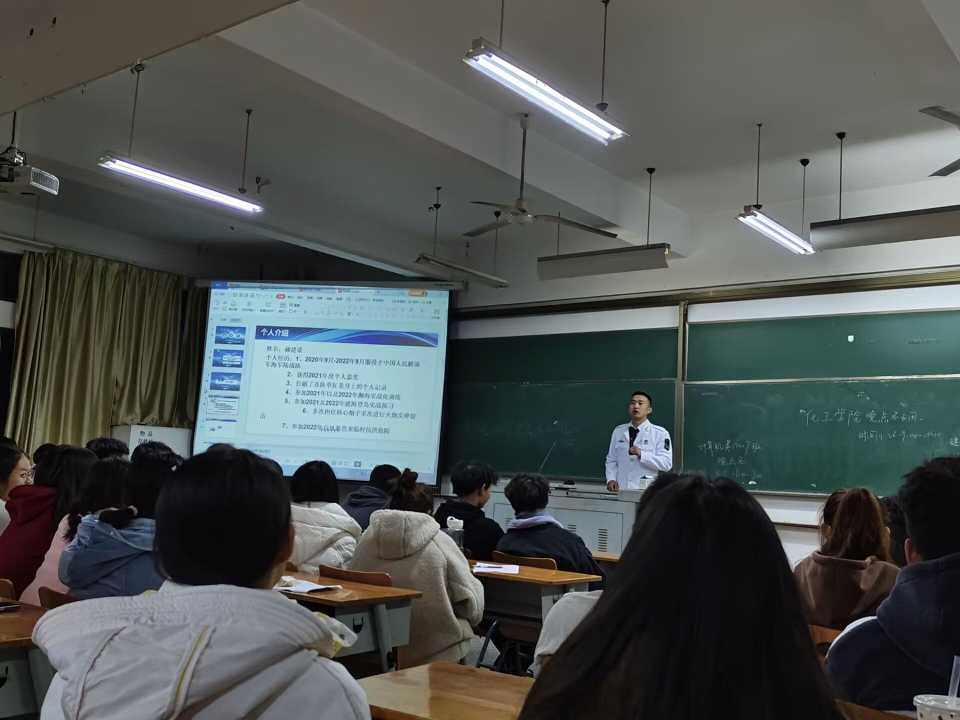学院以“青春由磨砺而出彩,人生因奋斗而升华”为主题的班会对大学生入伍基本条件和大学生参军特别优惠政策进行了着重讲解。学院还邀请了役学生士兵郝建设就参军入伍的个人经历、军营的生活以及大学生参军入伍的重要意义与同学们作了具体的交流分享。