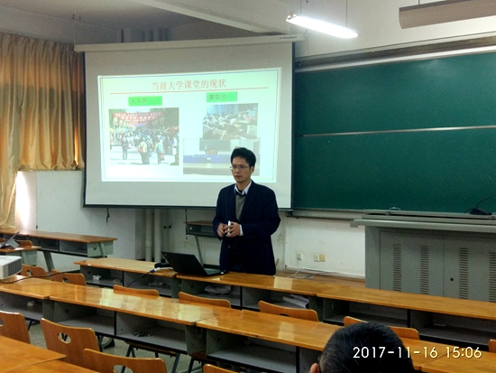 大学化学中心主任彭俊军副教授在理工楼210教师为全院40余名教师奉献了一场精彩的“蓝墨云”教学软件使用示范课。