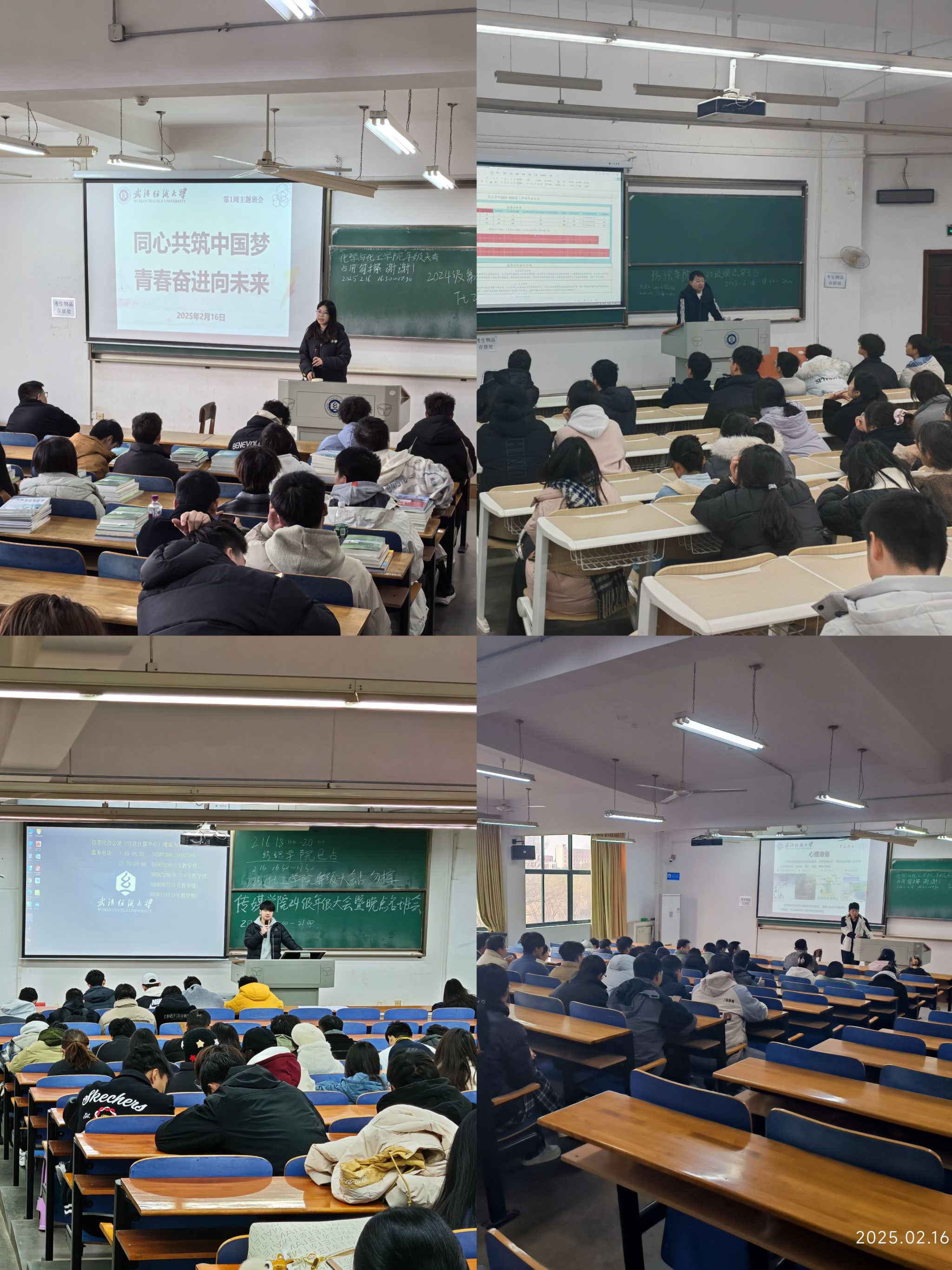 各年级辅导员组织召开 “同心共筑中国梦 青春奋进向未来” 主题班会。会上,学生们踊跃分享寒假社会实践中的所见所闻,积极畅谈新学期学业、就业、创业规划,围绕立志成为新时代好青年、好少年展开深入交流与思考。这不仅增进了学生间的沟通交流,更为大家明确新学期目标提供了有益参考。全力做好开学安全教育工作。向学生发放 2025 年春季学期高等学校开学《安全责任告知》《安全温馨提示》,组织学生认真学习后进行签收存档,确保每位学生都能清晰了解安全注意事项。积极开展开学心理调适活动,引导学生及时调整身心状态,尽快适应新学期学习生活,还详细告知学生学校心理咨询预约方式,全方位守护学生心理健康。