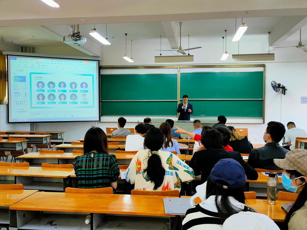 在崇礼楼211教室开展本科生第九期阳光论坛暨“挑战杯”院内选拔赛,学院邀请到刘磊、刘丽君、朱泽策、高超、余灵辉五位老师作为评委,由院党委副书记尤雯文主持活动,共有16支队伍参加了本次比赛。