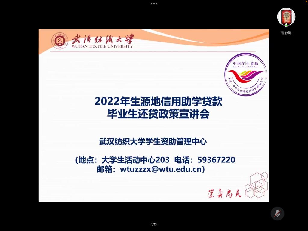 5月23日晚7点,学院召开2022年生源地信用助学贷款毕业生还贷政策宣讲会,校资助中心曹敏娜老师通过腾讯会议,详细给办理过助学贷款的学生讲解还款流程、违约后果、还款方式、还款具体操作、提前还款操作等重要事项,并针对同学们提出的提前还款、延期申请等个性问题,一一作出解答。
