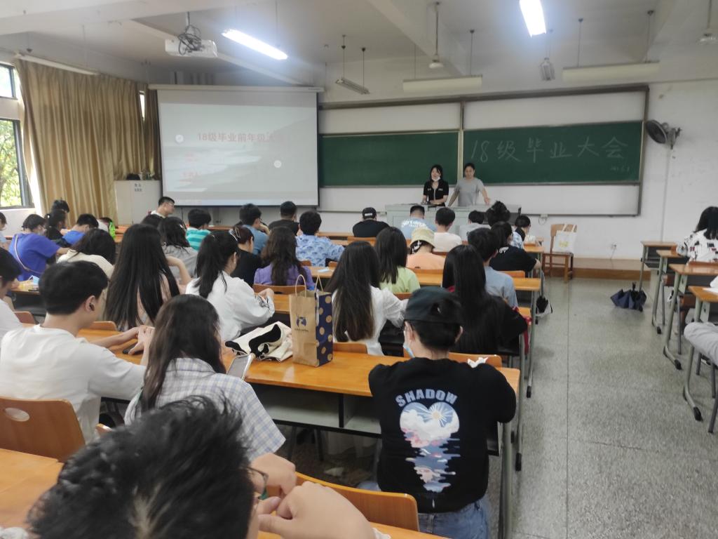 随后,毕业生辅导员胡子英详细讲解了毕业生离校前的各项事务安排、离校流程等,并对档案、户口迁移、毕业证的领取、党团组织关系转移等事项进行重点详细解读,她号召党员、学生干部要充分发挥先锋模范作用,做健康离校、和谐离校的表率,教育学生要诚信做人、文明做事,学会感恩,用高尚的格调、宽阔的眼界、大爱的情怀看待世界,学校和学院一定会尽全力给大家做好服务保障,确保离校过程中的每一个环节都能简便快捷、优质高效。