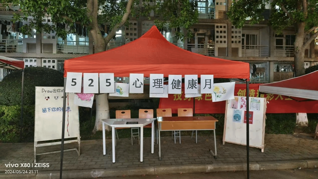 心理工作站在一食堂侧门开展“关爱心灵,绽放青春”心理健康活动。