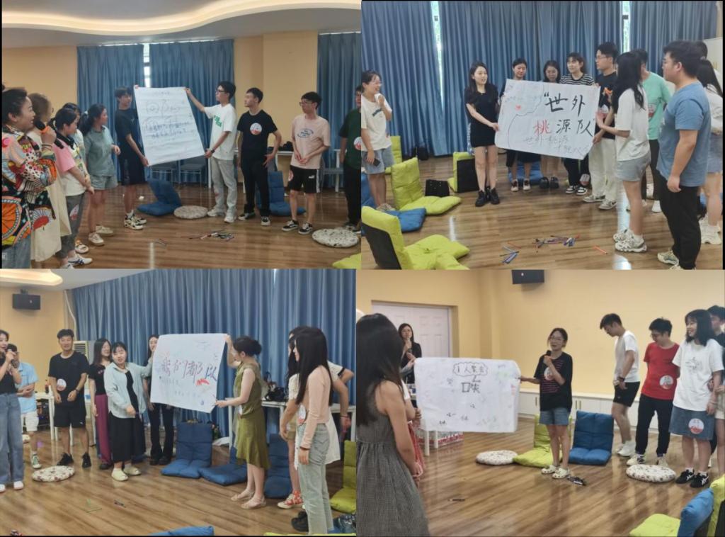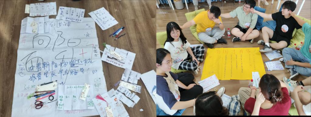 第三个阶段,在场的同学们分为了四个小组,小组内同学们的相互交流介绍,设计组名、小组标语和分享个人故事等一系列活动。