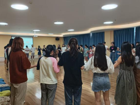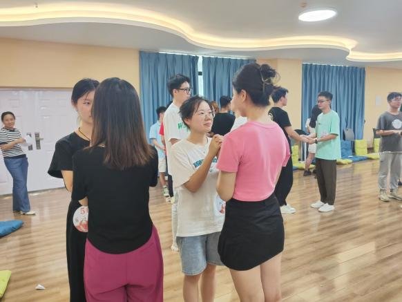 第二个阶段,同学们两两组合,互相介绍自己。此项游戏旨在告诉同学们珍惜每一次相遇。