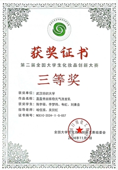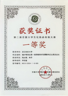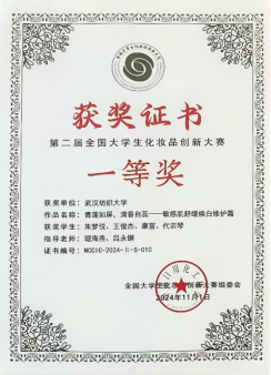 2024年11月1日,第二届全国大学生化妆品创新大赛在北京工商大学良乡校区圆满落幕,由我院师生组成的参赛队伍共获得一等奖2项、三等奖2项的好成绩。琚海燕老师、吕永钢老师和李泽豪老师荣获优秀指导教师奖。