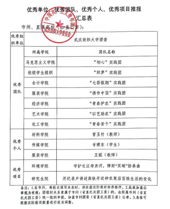 根据团省委《关于开展2022年湖北省大中专学生志愿者暑期文化科技卫生“三下乡”“返家乡”社会实践活动总结和通报工作的通知》要求,经过结项答辩及校团委评审,我院“青春苦干”实践团在2022年暑期“三下乡”社会实践活动中斩获佳绩,获评优秀团队!